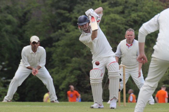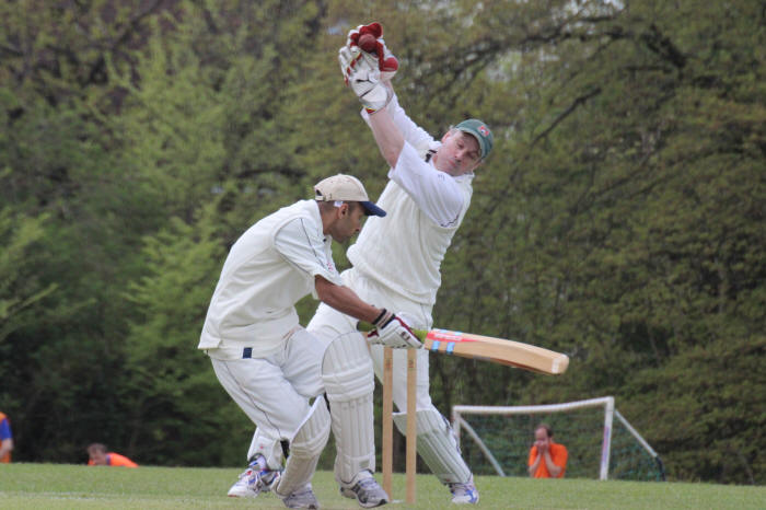 - Opener Peter Loving (20) plays rock of innings, but caught on